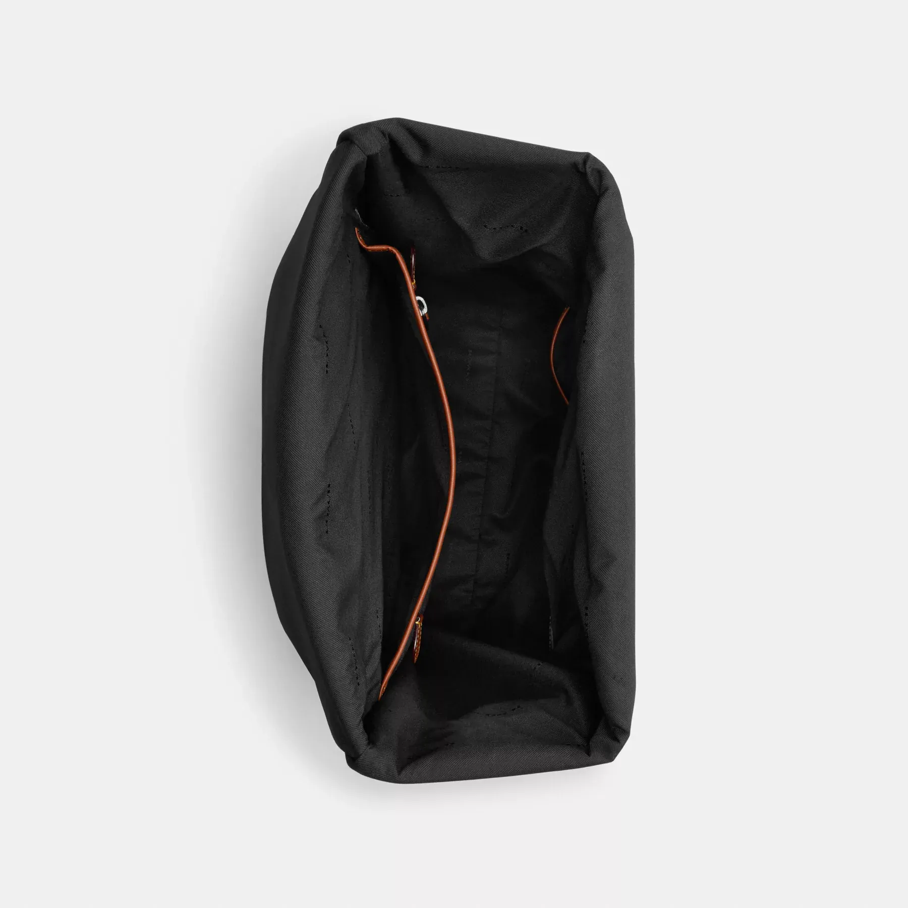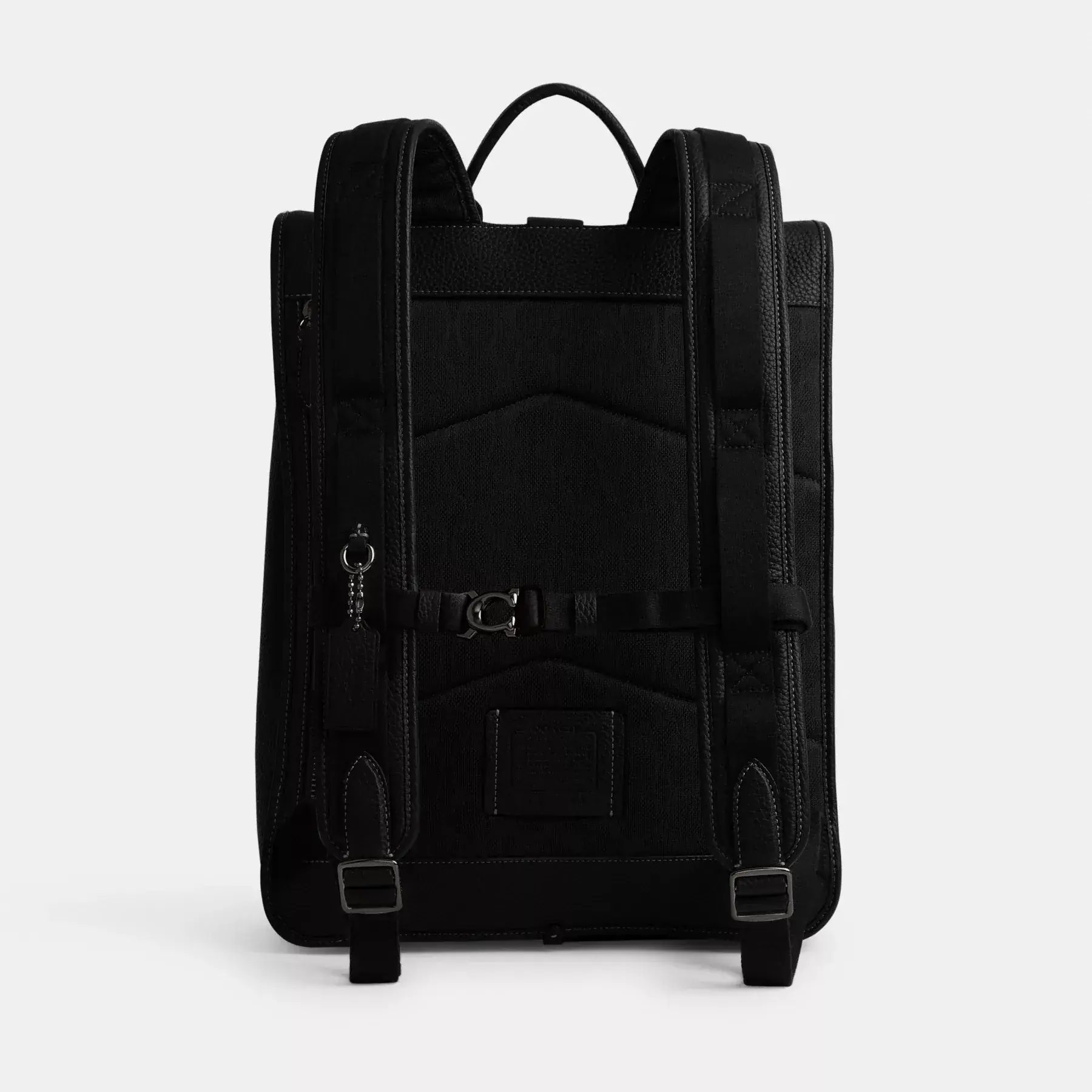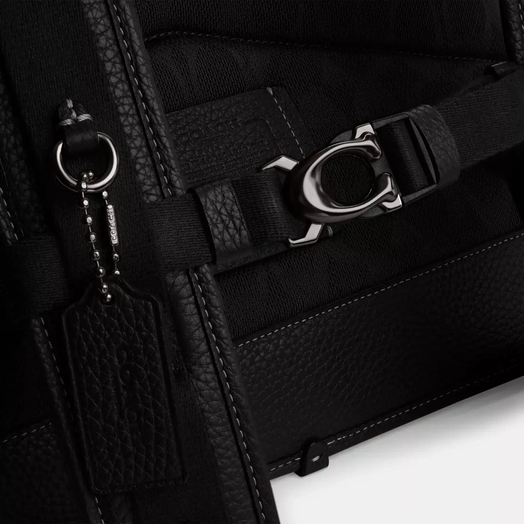 Always on call, our Beck is a sophisticated sporty choice for everyday. Crafted of soft polished pebble leather, this sleek roll top backpack has space for a 16″ laptop, interior multifunction pockets and an outside zip pocket for easy organization. Featuring exterior zipper access to the main compartment, the work-to-weekend style is finished with a lightweight and breathable Signature spacer mesh back, adjustable shoulder straps and a chest strap for comfortable wear. (C and be seen with our sporty Signature speedclip hardware.)