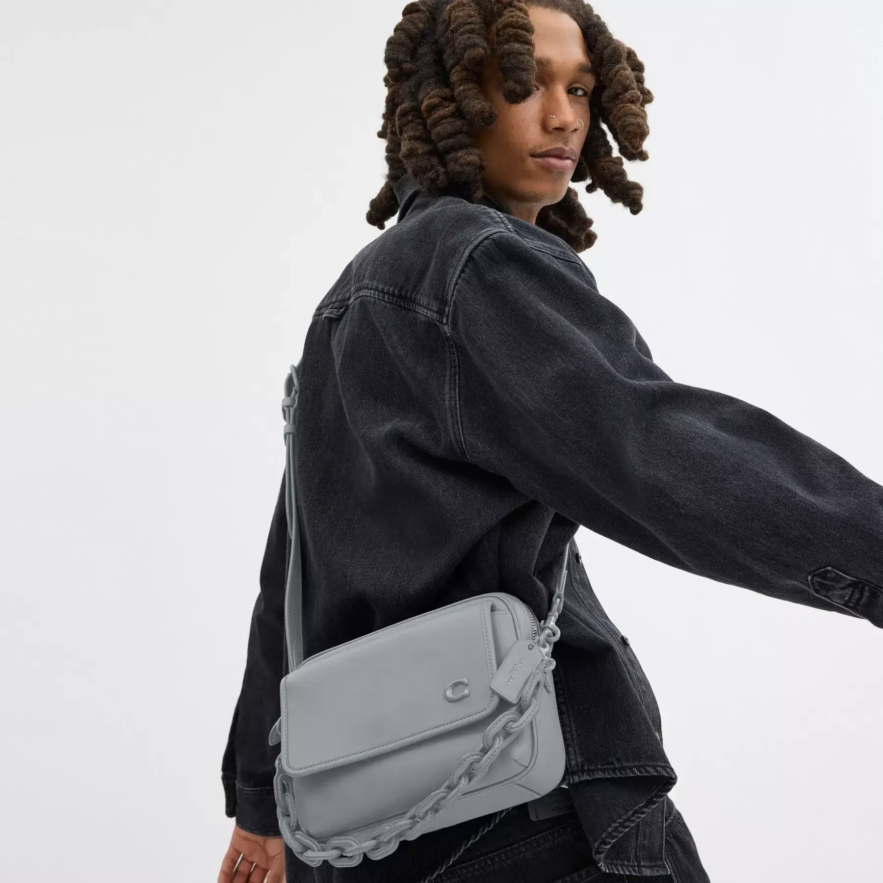 For adventures near and far, our Charter is designed to make every journey, commute and errand feel like a first-class experience. Crafted of our buttery soft glovetanned leather and finished with durable tonal matte PVD coated hardware, this structured Crossbody 24 has an outside flap front pocket for easy access to essentials and a spacious zip compartment with space for a phone, wallet and more. Carry with the striking chunky chain strap or wear crossbody with the detachable strap.