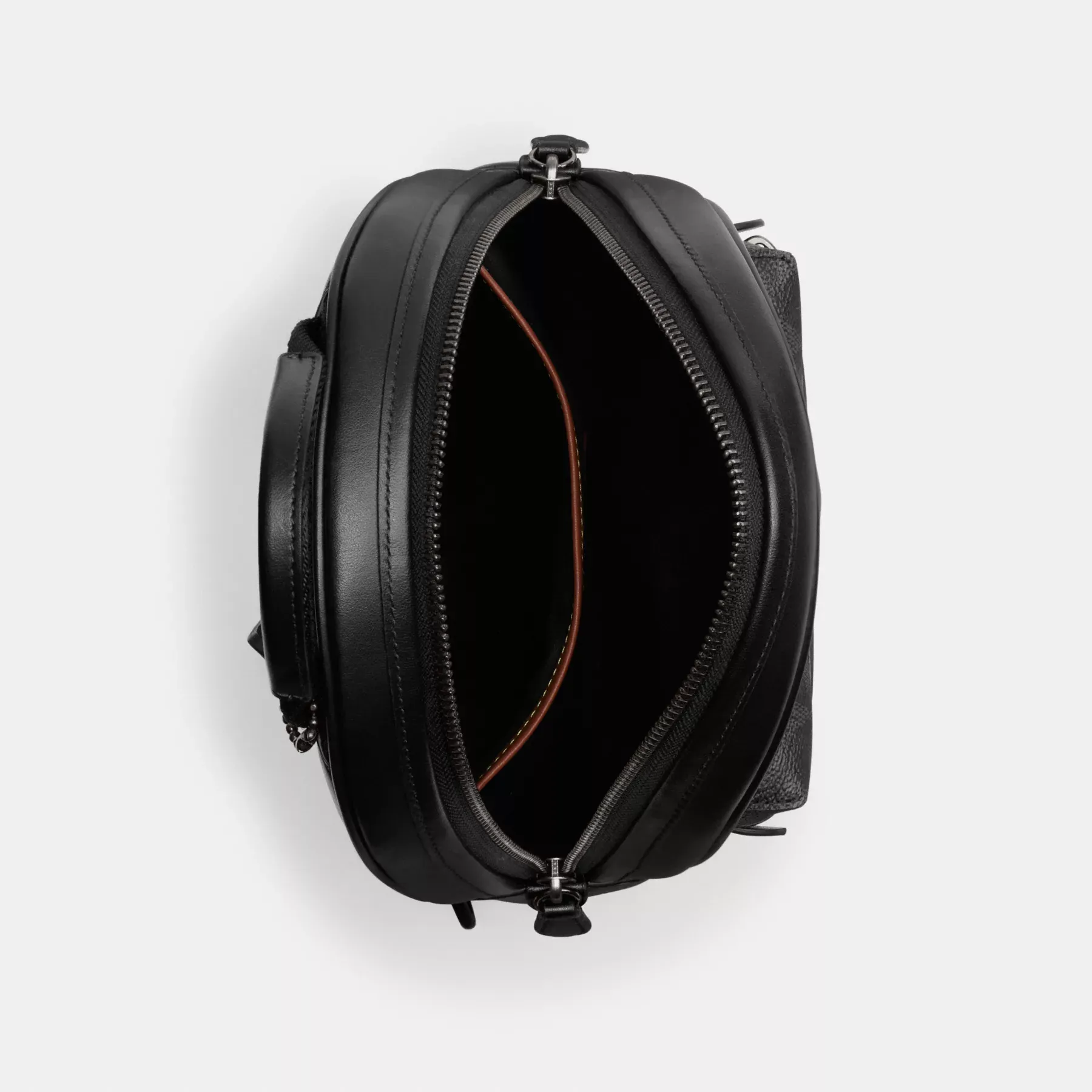 For adventures near and far, our Charter is designed to make every journey, commute and errand feel like a first-class experience. A slender alternative to a backpack, this streamlined Pack is a sporty hands-free design with room for the largest size phone or iPad, pockets inside and out for easy organization and lightweight spacer mesh backing. Crafted of refined leather and our Signature canvas, clip it left side or right side to wear slung on the shoulder or crossbody.