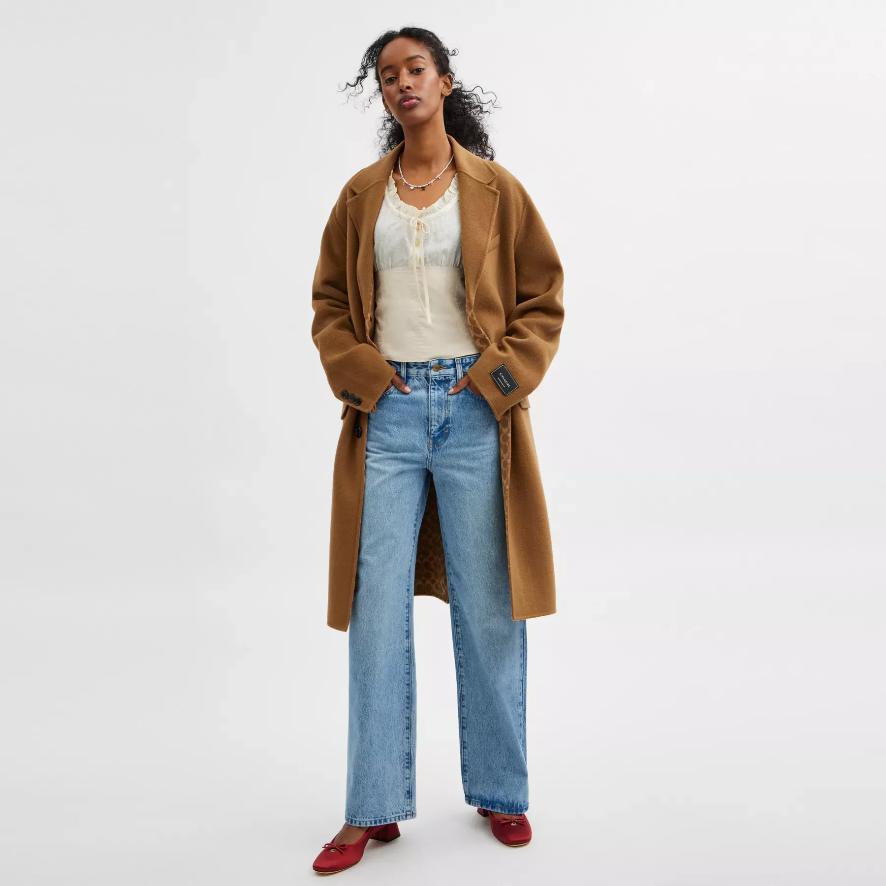 ,A polished look for colder weather, this single-breasted coat is crafted of a double-faced wool-blend with beautiful drape and smooth, even surface on both sides. Featuring a three-button closure and flap pockets, the peak lapel silhouette is finished with a back vent for added mobility and our Coach tailored tag at the sleeve.