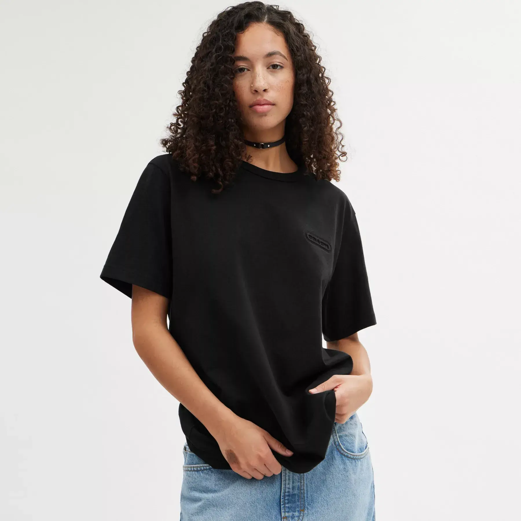 ,A wardrobe staple, this crewneck T-shirt is crafted of soft cotton. The classic-fit style features our tonal Coach Badge for a heritage touch.