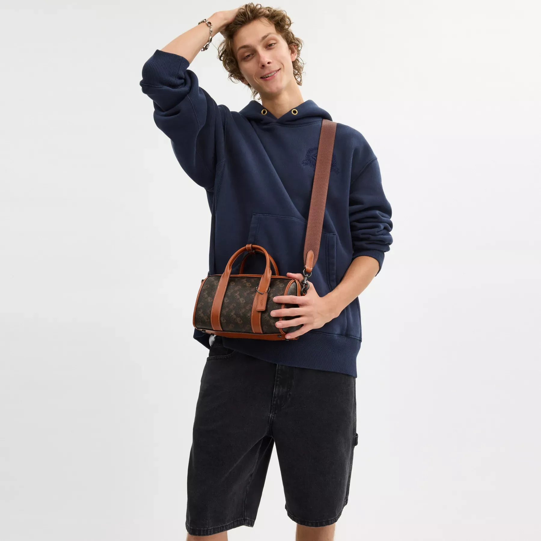 ,A bag as distinct as its namesake city, the Gotham is a sleek no-fuss carryall. With inside multifunction pockets for easy organization, this compact Duffle 24 features an open interior with room for everyday essentials. Crafted of refined leather and durable coated canvas printed with our iconic Horse and Carriage motif, it’s secured by a zip closure and finished with a detachable strap for shoulder or crossbody wear.