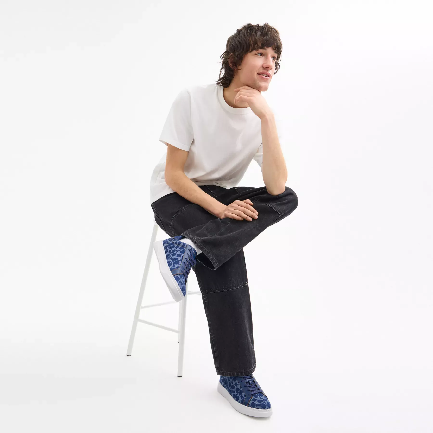 High Line Sneaker In Signature Denim Deep Blue Multi