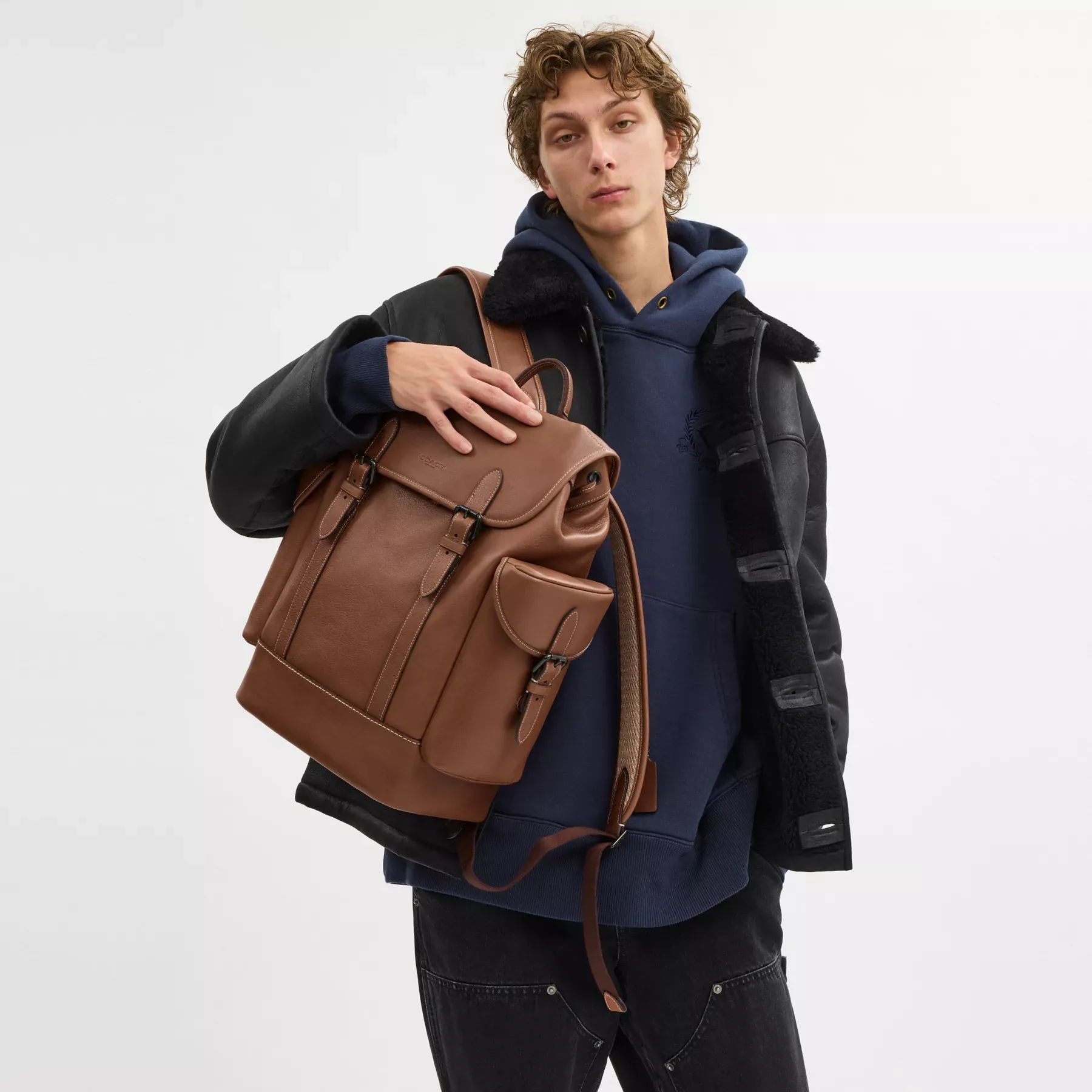 Combining effortless style and major functionality, our Hitch takes you to work, weekends and everywhere in between. Crafted of natural grain leather with beautiful texture and soft feel, this organized backpack has space for a 15″ laptop, interior multifunction pockets to hold small accessories, and exterior side pockets for easy access to essentials. It’s a comfortable lightweight style with leather-covered magnetic snap closures, durable microfiber lining and spacer mesh backing.