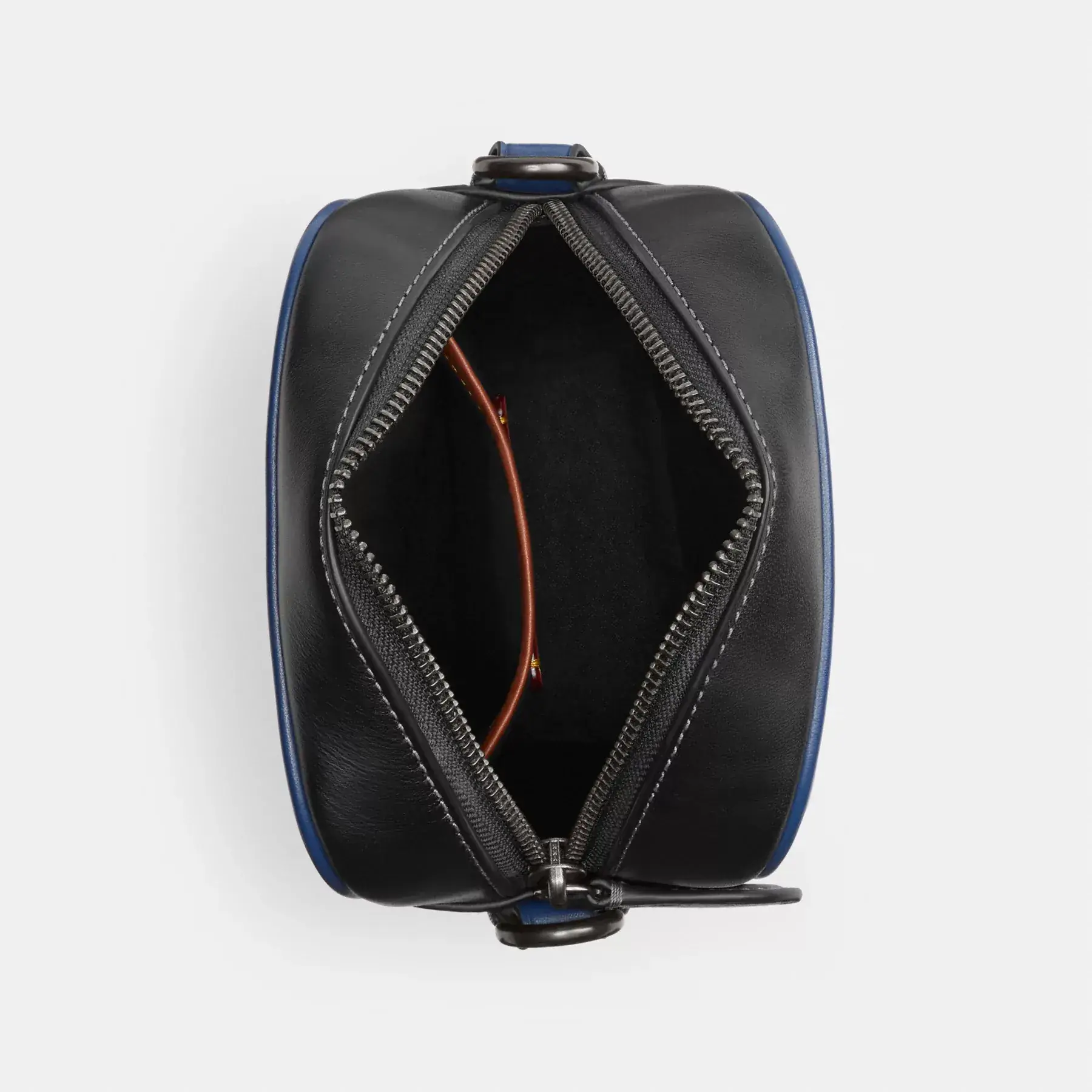 • Zip closure, fabric lining