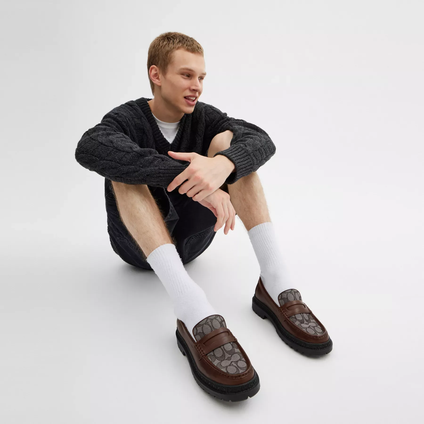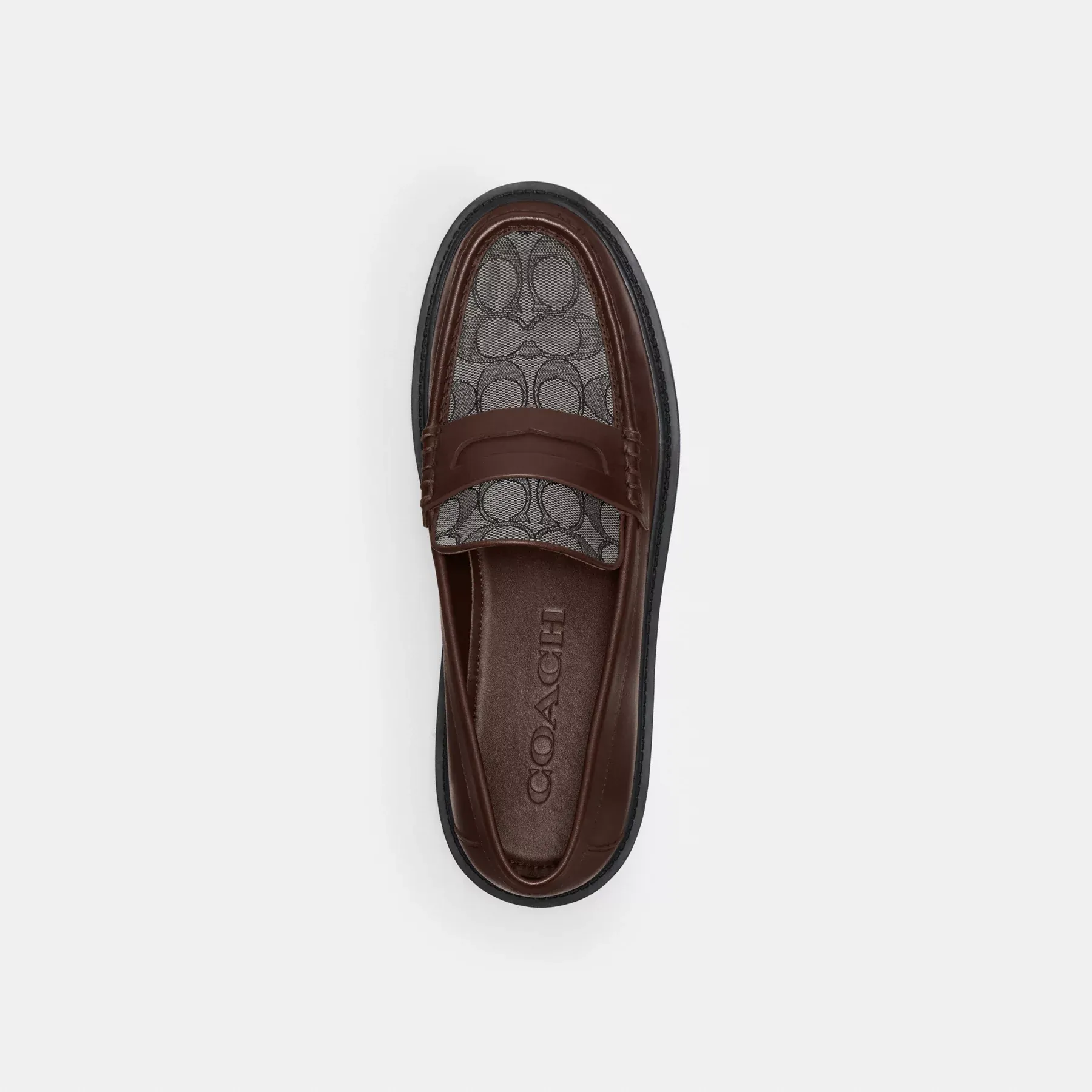 A modern twist on the classic style, this loafer is updated with an elevated platform and a penny keeper detailed with our Signature coin for an iconic Coach look. Finished with a rubber sole for all-day comfort and durability, it’s crafted of smooth leather and our environmentally conscious Signature jacquard made from a blend of organic cotton and recycled plastic bottles.