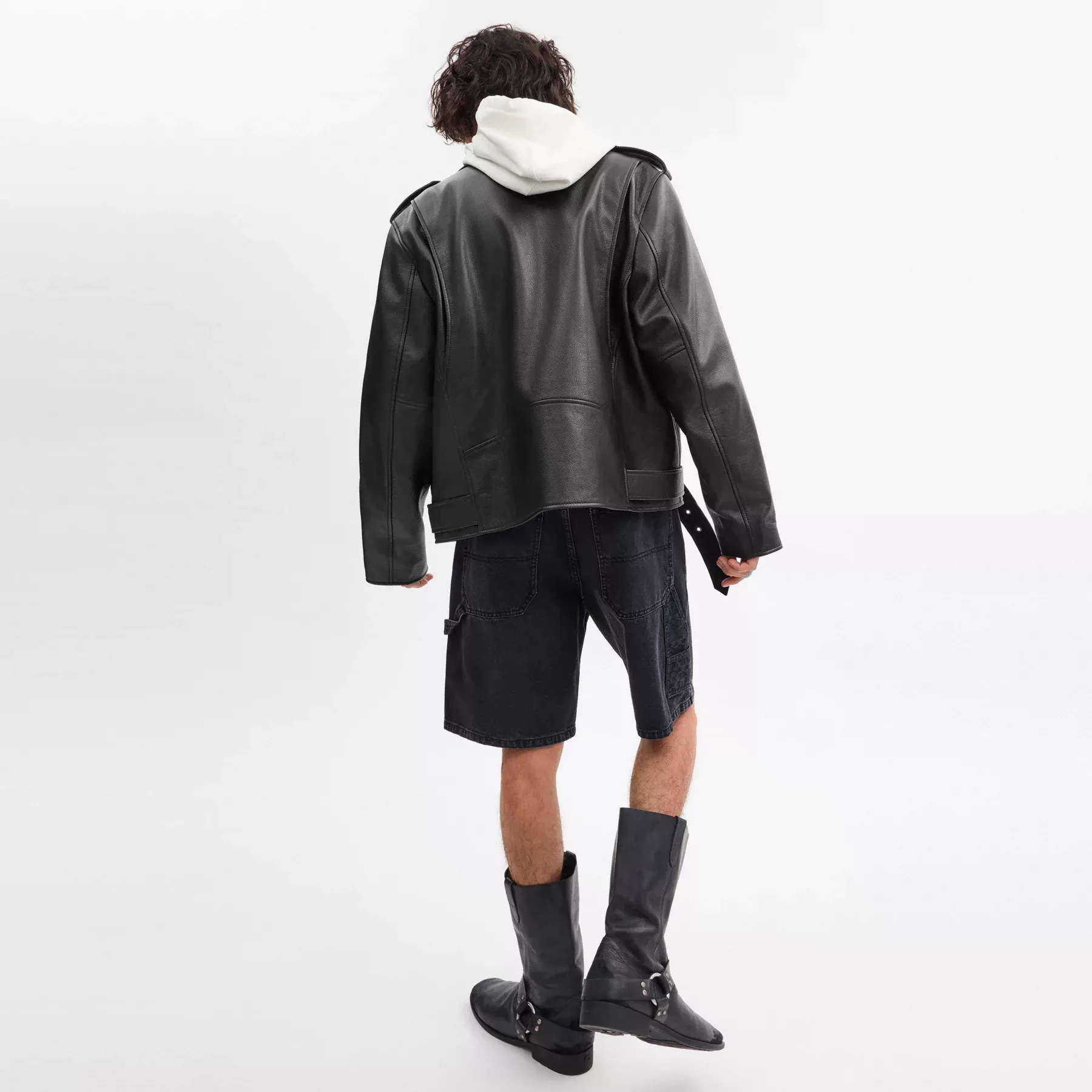 ,Rev up your wardrobe with our soft leather moto jacket, an iconic Coach style inspired by the freedom of the open road. Finished with our Signature lining, this biker-inspired style features a timeless pointed collar with signature snaps, a zip closure, a mix of zip and snap pockets and an adjustable buckle at the hem.