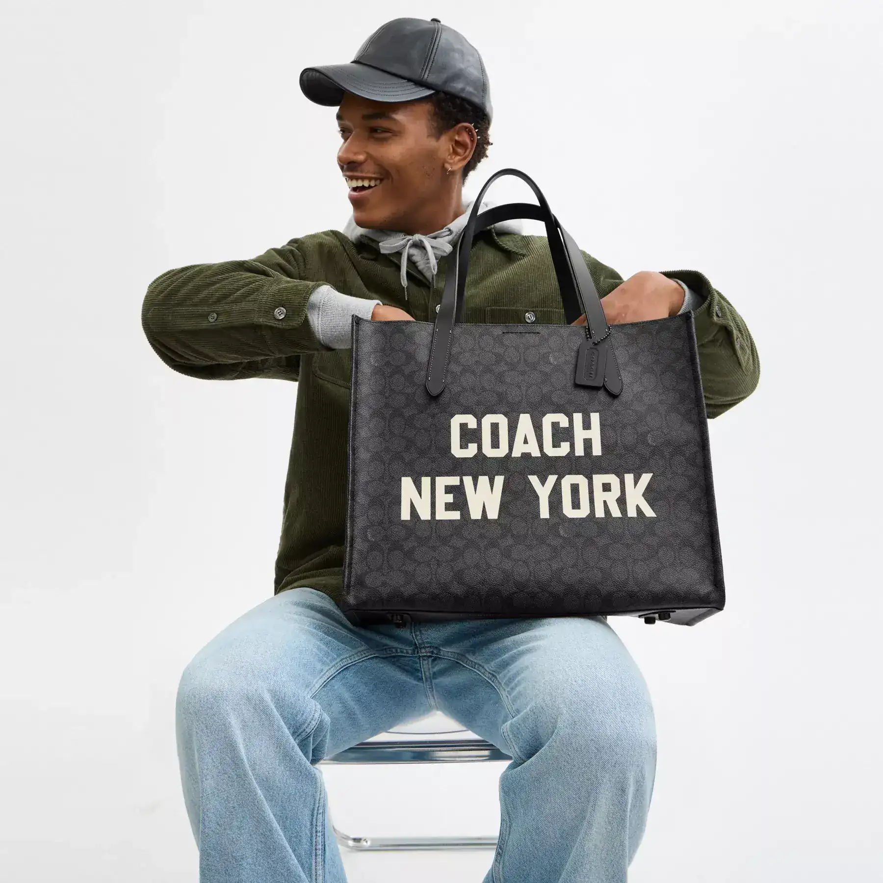 Whether your day is a sprint or a marathon, our Relay Tote is ready to go the distance. Perfect for every day, the spacious carryall has room to hold work, workout or weekend gear with space for a 16″ laptop and an interior zip pocket to organize essentials. Crafted of our Signature canvas detailed with our Coach graphic, it secures with a magnetic snap closure. (Effortless style and major functionality? Yes, please!)