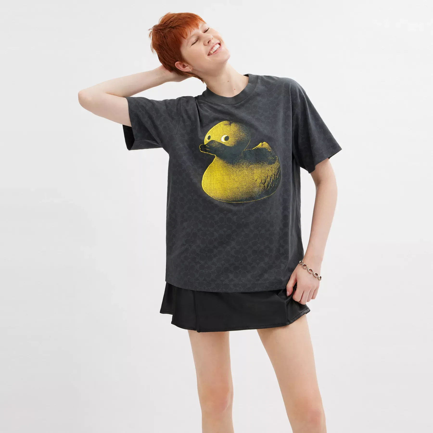 ,Featuring a playful nostalgic toy duck motif, this Signature T-shirt is crafted of organic cotton made without the use of harmful chemicals or pesticides. The whimsical relaxed-fit design is finished with a ribbed crewneck.