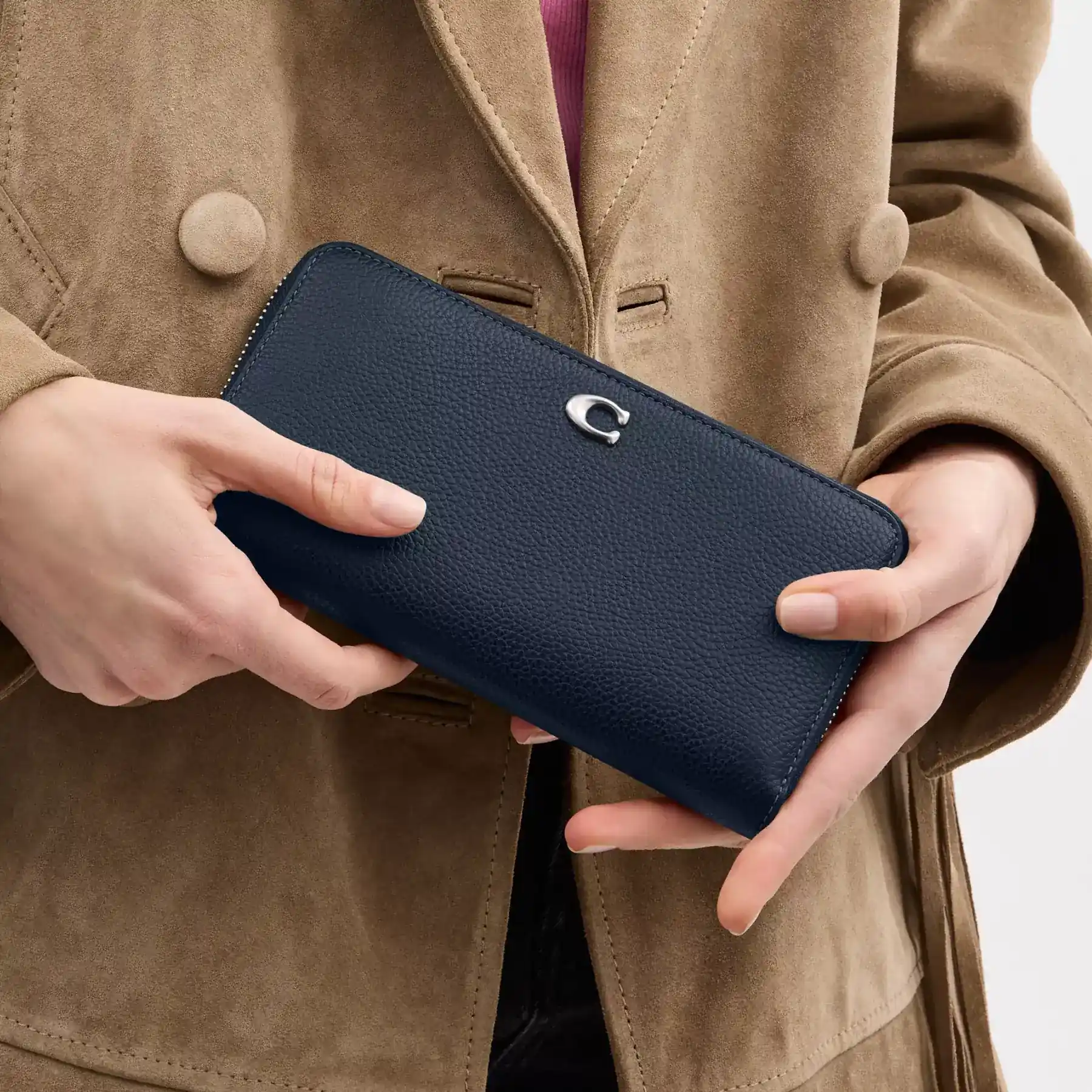 Crafted of polished pebble leather detailed with our Signature hardware, this expandable design unzips to reveal a spacious interior. It holds an iPhone X and features 12 card slots, two full-length bill compartments and a coin purse to keep essentials organized.