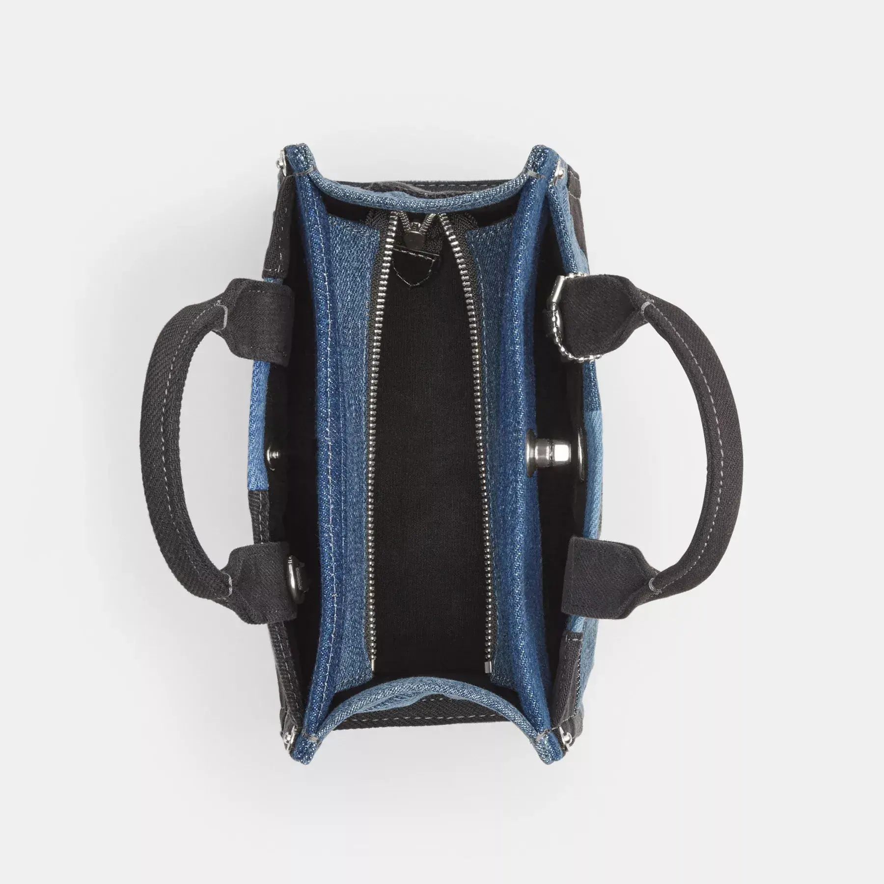 Carry as much (or as little) as you like with our lightweight Cargo tote. Detailed with our cursive Coach script embroidery and iconic turnlock closure, this petite 20 has an open interior with room for a phone, two outside pockets for easy organization and a removable webbing strap for shoulder or crossbody wear. Designed with smooth leather accents, the versatile style is crafted to last from beautifully loveworn repurposed denim. It’s inspired by the endless possibilities of secondhand garments and our commitment to reducing our impact on the planet.