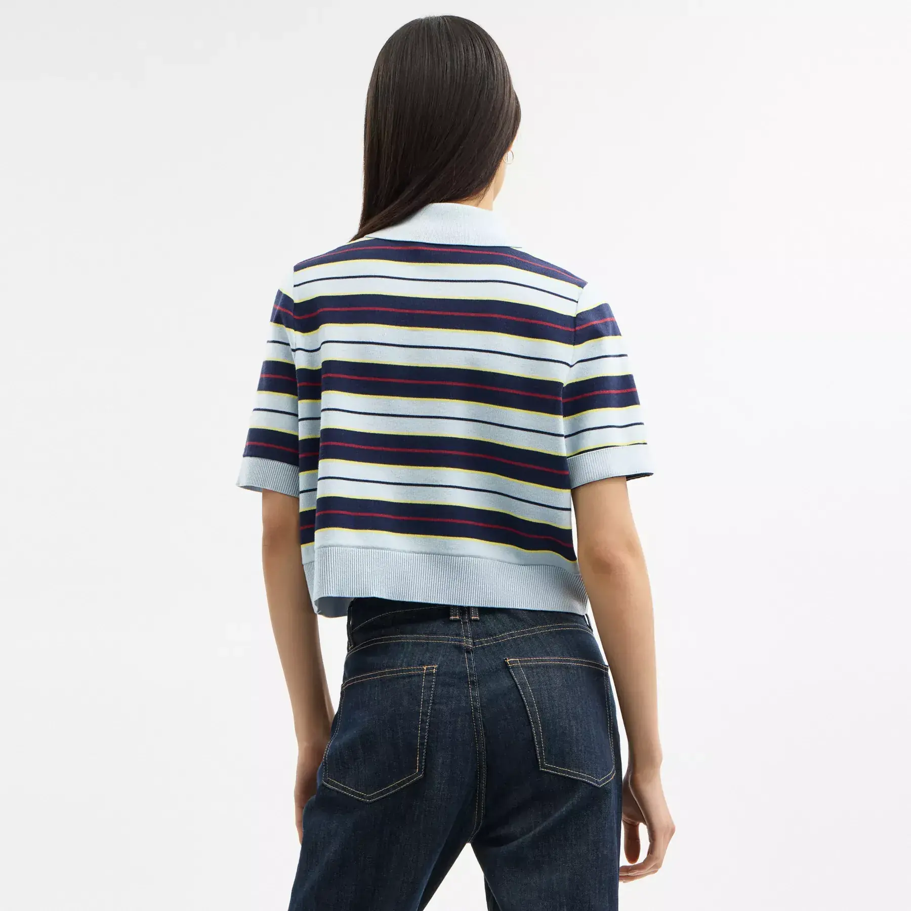 Cropped Stripe Polo Blue Multi