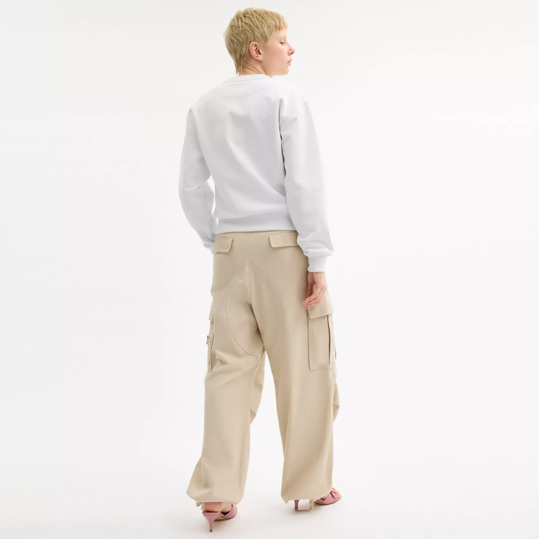 ,A sporty style with a delicate touch, this classic-fit sweatshirt is embroidered with our cursive Coach script detailed with textured floral lace appliqué. The soft cotton crewneck is finished with ribbed trim.