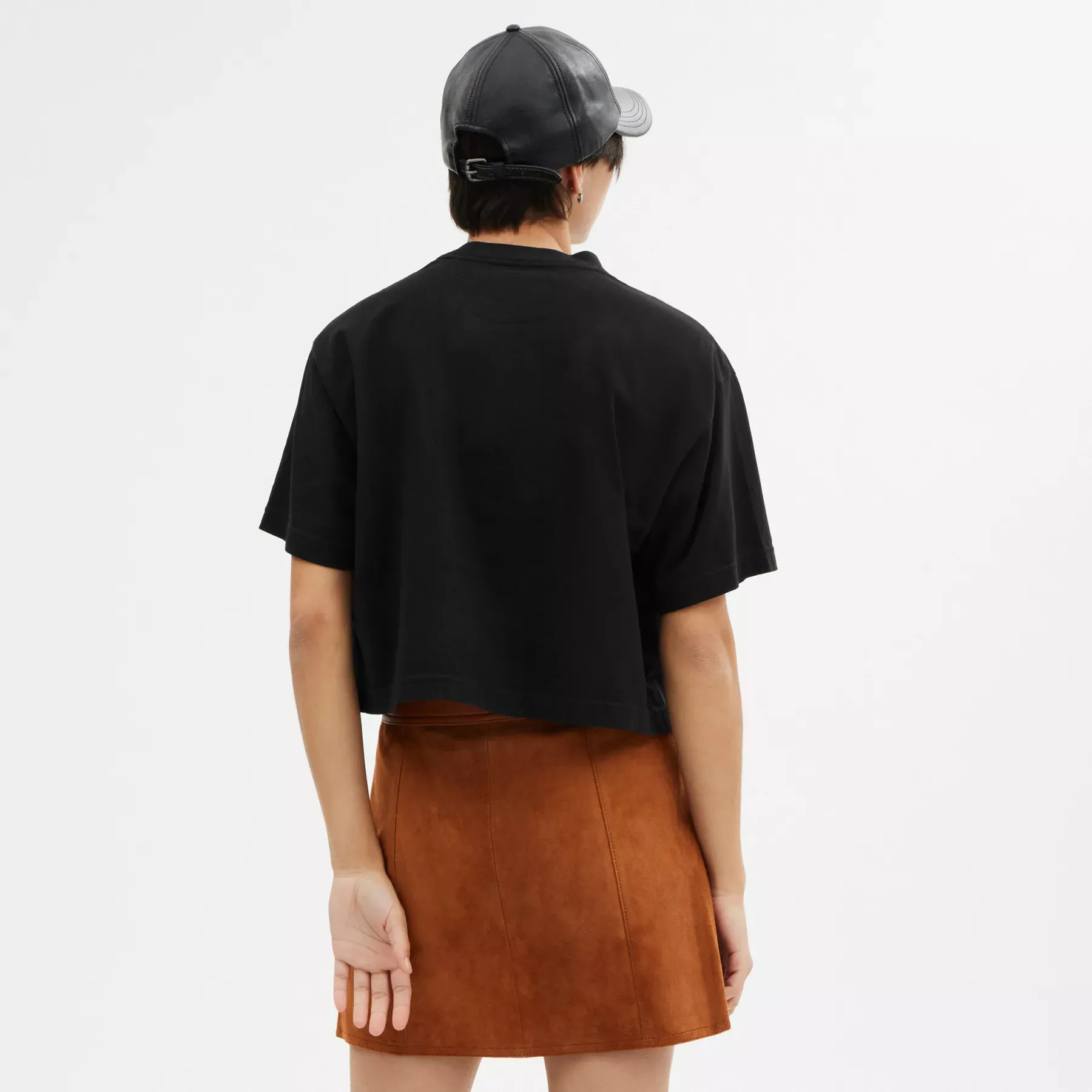,Detailed with our cursive Coach script, this cropped T-shirt is crafted of soft cotton. The boxy silhouette features a comfortable, easy to wear dropped shoulder.