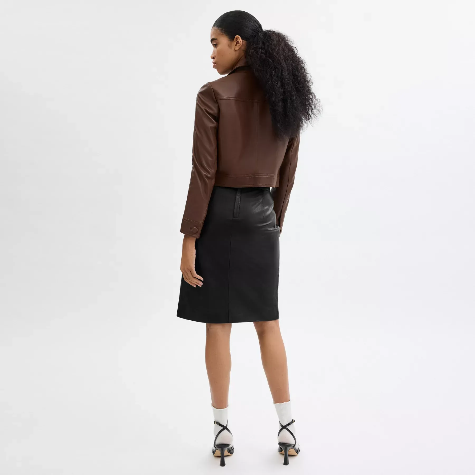 Detailed with our Heritage C Plaque, this sleek straight-cut pencil skirt is crafted of smooth, supple leather. It’s finished with a back vent for ease of movement.
