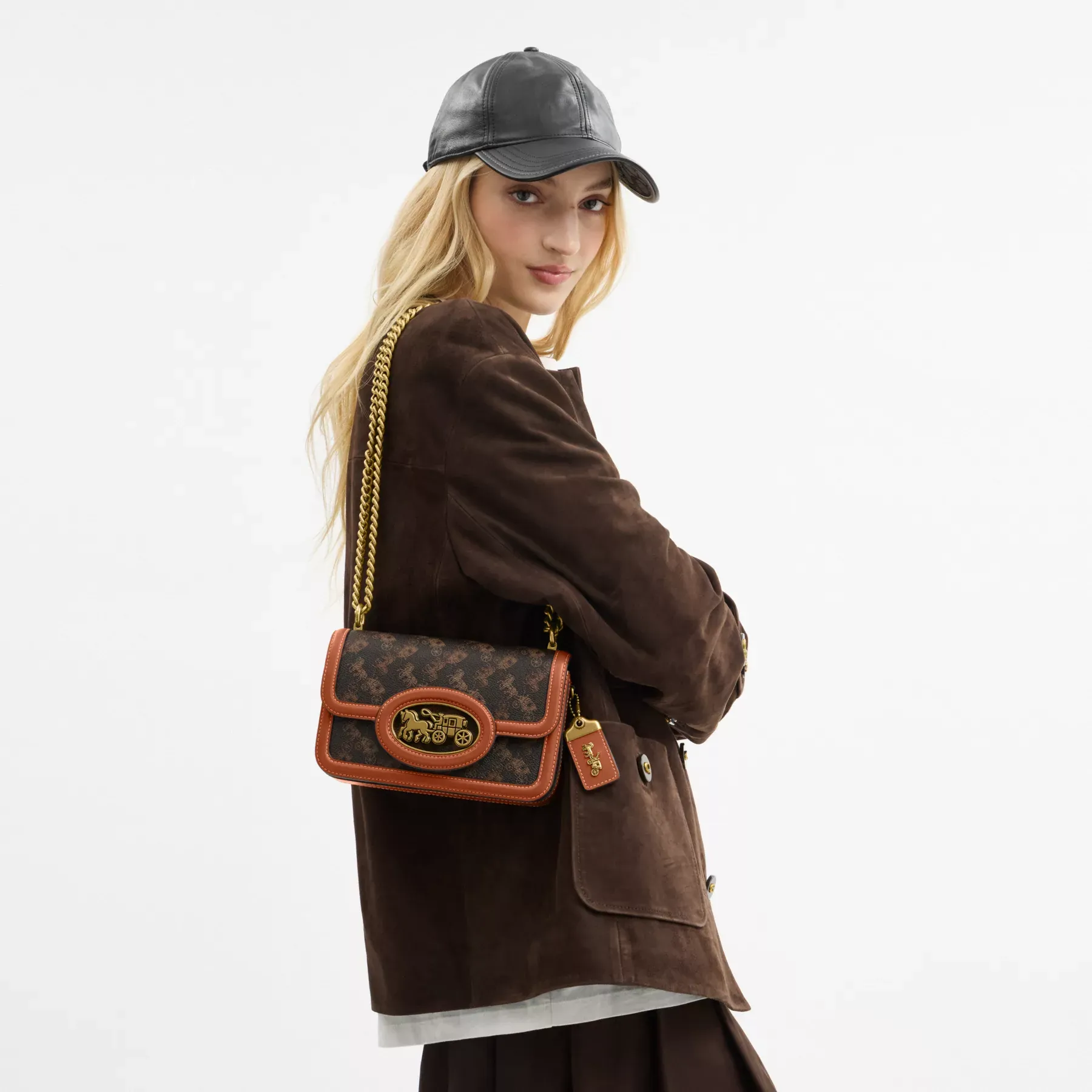 Hero Shoulder Bag With Horse And Carriage Print Truffle Burnished Amber