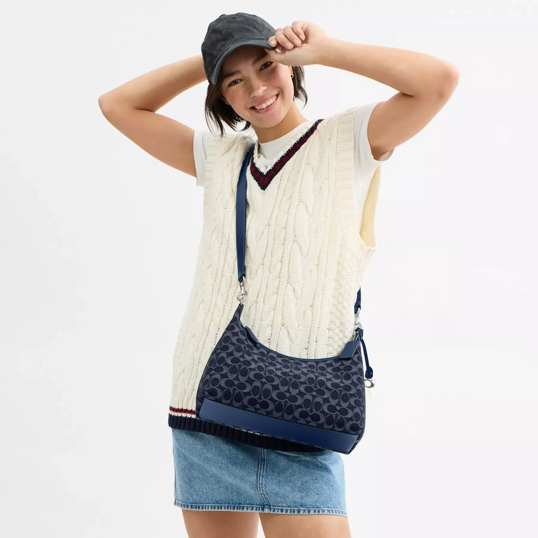 Timeless with a twist, our Juliet is a sophisticated style with a slouchy, relaxed shape. Finished with a detachable shoulder strap and a detachable crossbody strap for versatile wear, the one compartment refined leather and Signature denim design features an inside pocket to organize essentials. It’s sleek, spacious, stylish, functional (basically, everything you want in a bag).
