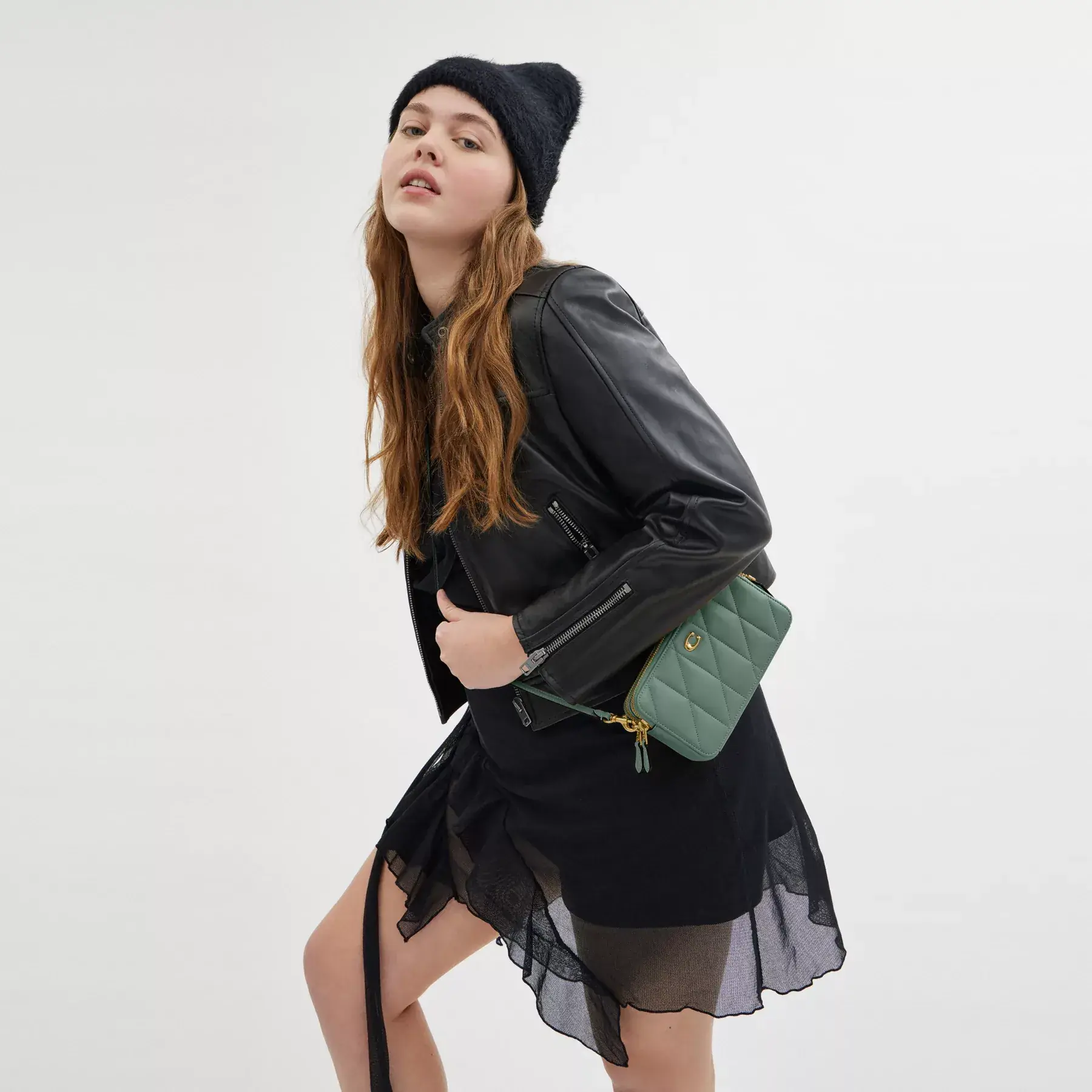 A total multitasker, our perfectly sized Kira can be worn as a crossbody, a wristlet, carried as a clutch or used as a pouch in a larger bag. Crafted of plush, quilted nappa leather, it has two zippered compartments and a convenient center slip pocket to keep you organized with room for a phone, cards, keys and other accessories.