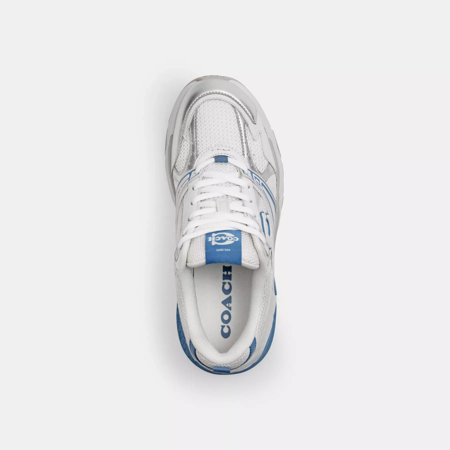 • Metallic leather, mesh and rubber upper