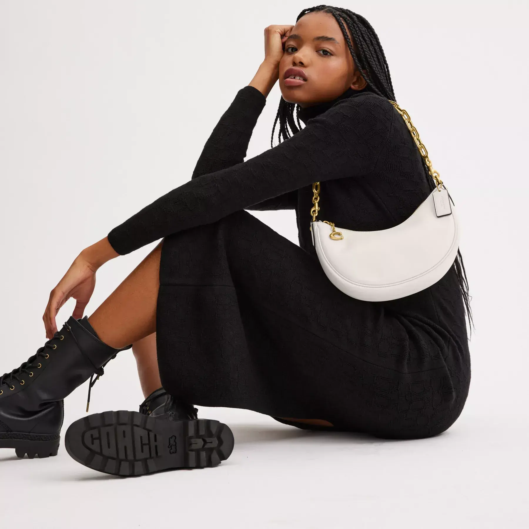 Soft and spacious, our crescent-shaped Mira is ahead of the curve. The versatile style is crafted of buttery soft glovetanned leather finished with a secure zip-top closure detailed with our C hardware. It comes with a chunky chain-link shoulder strap and a detachable leather strap for crossbody wear. (Explore the possibilities.)