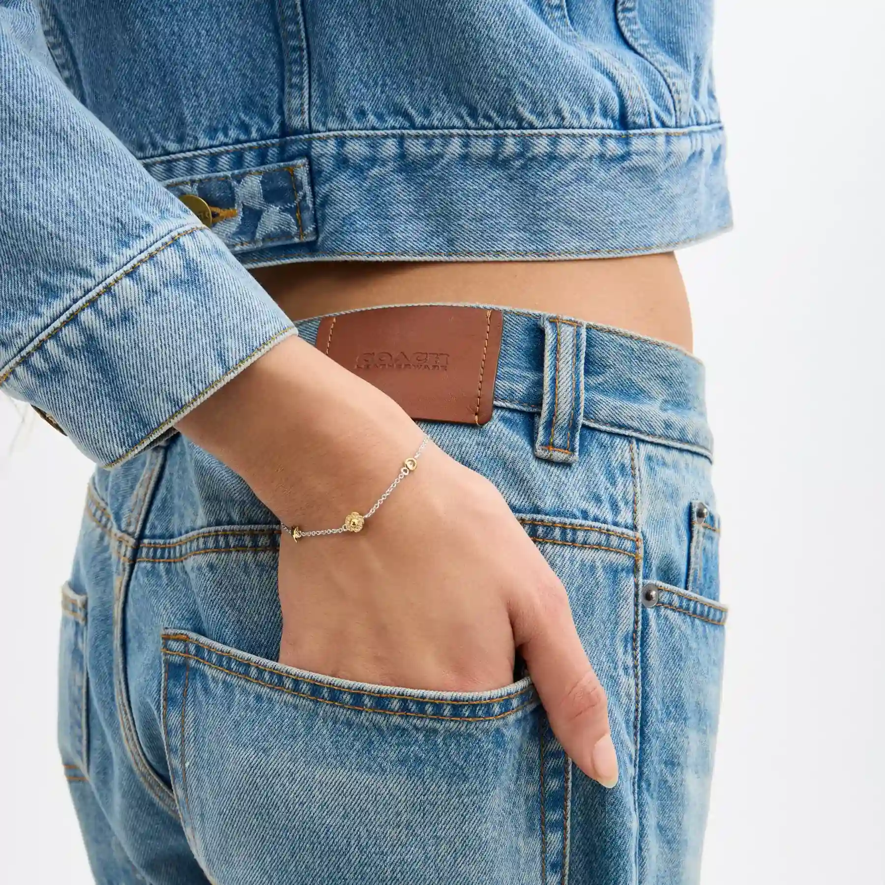 This delicate chain bracelet is accented with an array of Coach motifs and sparkling crystals. It’s finished with an adjustable clasp closure.