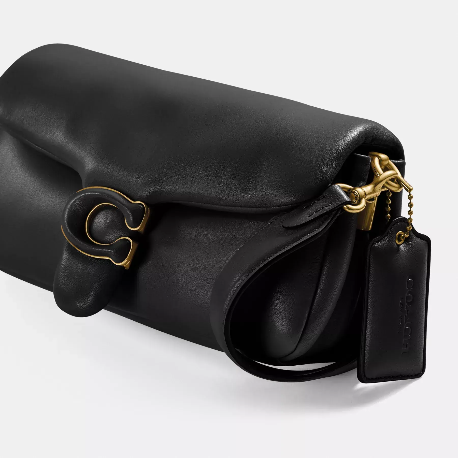The Pillow Tabby reimagines the structured silhouette of an archival 1970s Coach design with plush, ultra-soft leather and wrapped Signature hardware. The compact 26 features two detachable straps to carry by hand, style as a short shoulder bag or wear crossbody.