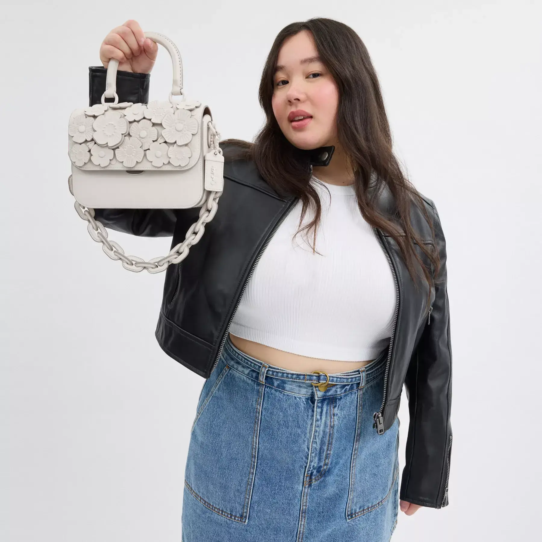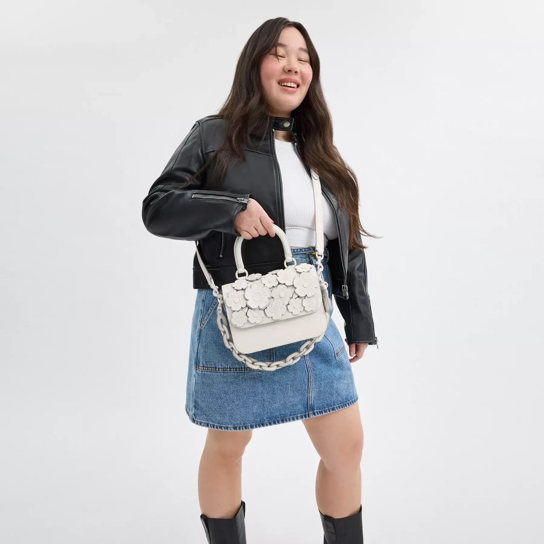 Inspired by free spirits, rebels and dreamers, the aptly named Rogue is a go-anywhere bag. This petite addition to the Rogue family can be carried by the top handle, worn as a short shoulder bag with the elegant leather-covered chain strap or crossbody with the long detachable strap. Perfectly organized with four compartments and a convenient outside slip pocket for easy access to essentials, the versatile glovetanned leather style secures with a pushlock closure and finished with durable tonal matte PVD coated hardware. It’s embellished with our debossed Tea Rose motif and an abundance of our hand-applied dimensional Tea Rose appliqué in a process that take up to 3 hours to create.