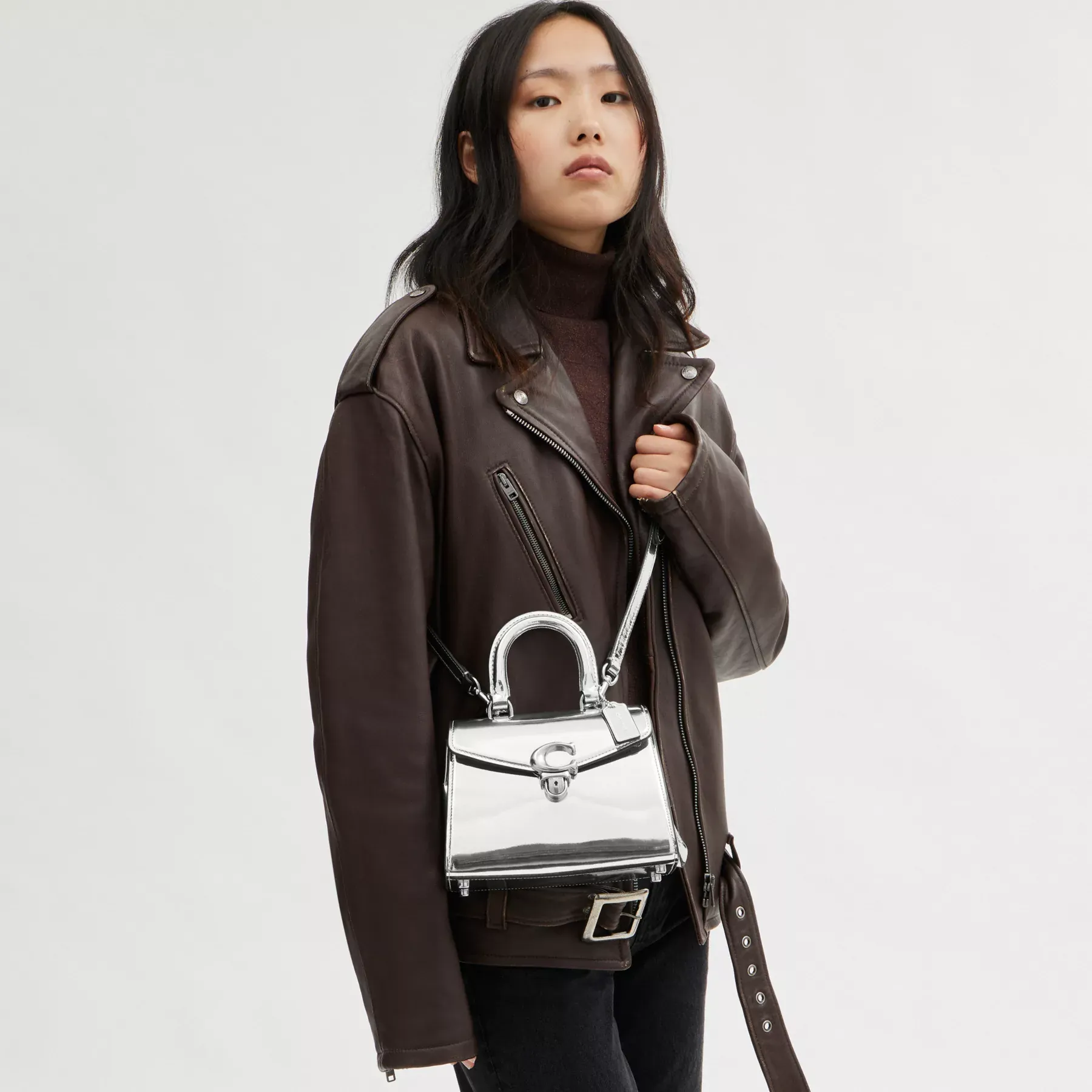 A modern interpretation of a classic design, our Sammy is a timeless style that you’ll love (and wear) for years to come. Finished with an archive-inspired Signature push-lock closure and our Rogue luggage top handle, the compact 21 has expandable side gussets, space for the largest iPhone and plenty of pockets to keep you organized on the go. Crafted of lustrous mirror metallic leather, wear crossbody with the detachable strap. (Feels good to feel put-together, doesn’t it?)