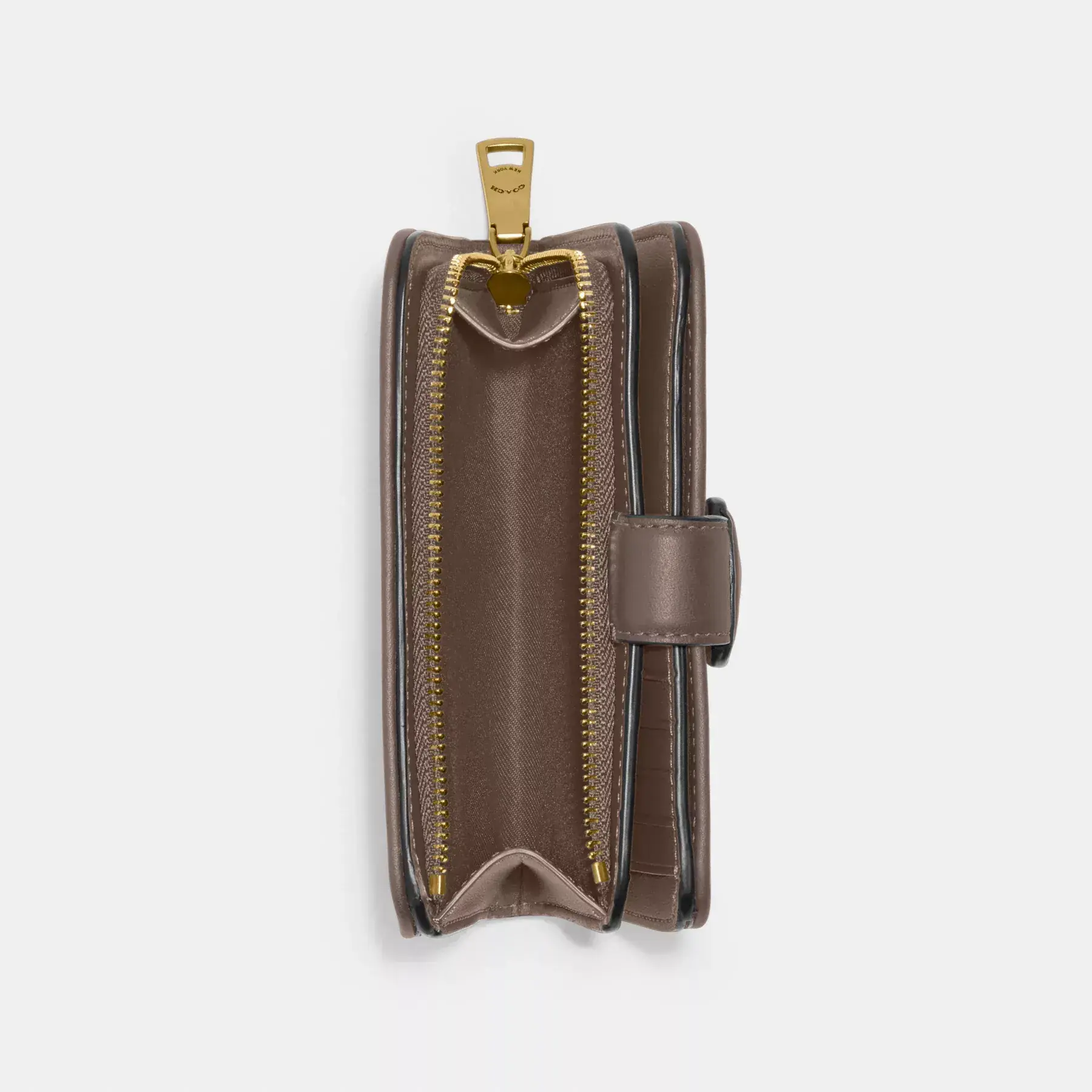 Crafted of smooth leather, this bi-fold Tabby medium wallet is a modern take on an archival 1970s Coach design. Featuring a convenient exterior zip pocket for coins, receipts, earbuds and other small essentials, it unsnaps to reveal ten card slots, slip pockets and a full-length bill compartment.