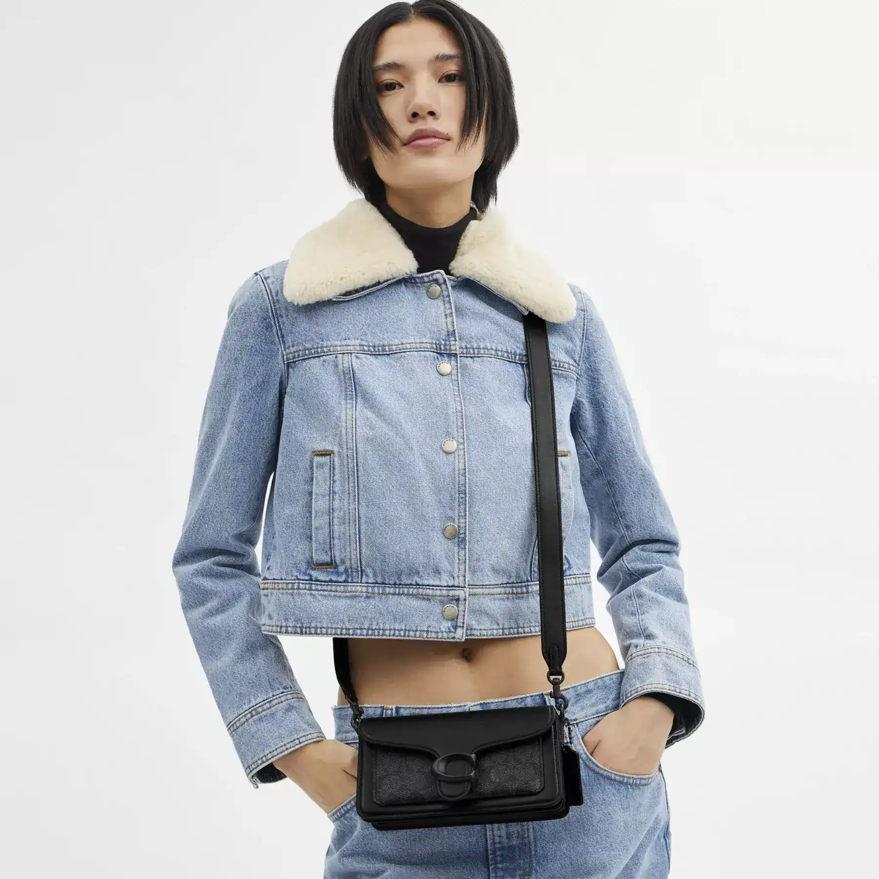 A modern take on an archival 1970s Coach design, our structured Tabby shoulder bag is crafted of refined leather and our Signature canvas. Smaller than the 26, the petite 20 features two detachable straps to carry by hand, style as a short shoulder bag or wear crossbody. It’s finished with durable tonal matte PVD coated hardware and our Signature for an iconic touch.