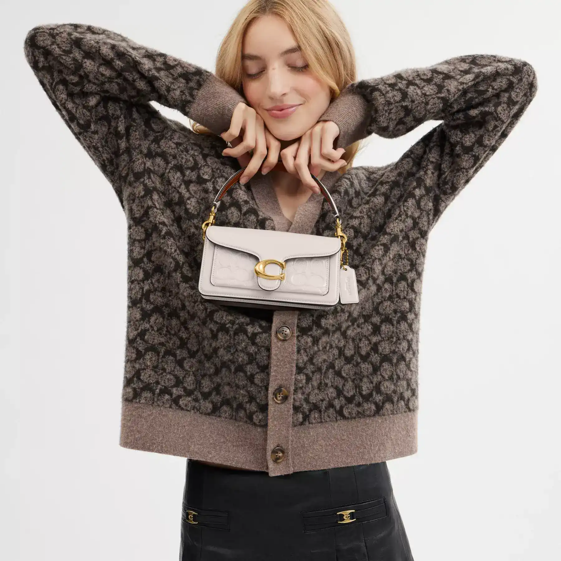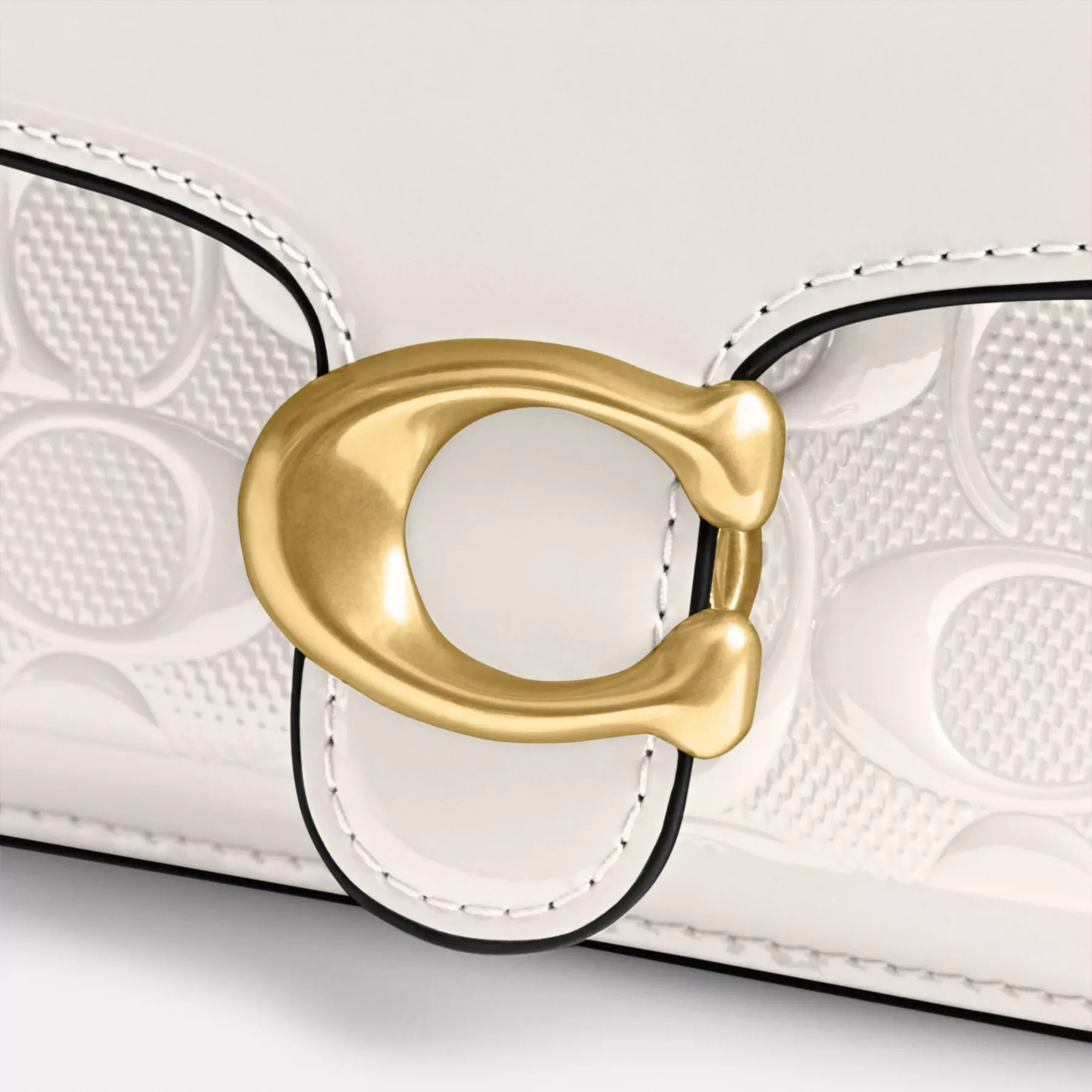 A modern take on an archival 1970s Coach design, our structured Tabby shoulder bag is crafted of our glossy Signature patent leather. Smaller than the 26, the petite 20 features two detachable straps to carry by hand, style as a short shoulder bag or wear crossbody. It’s finished with our Signature hardware for an iconic touch.