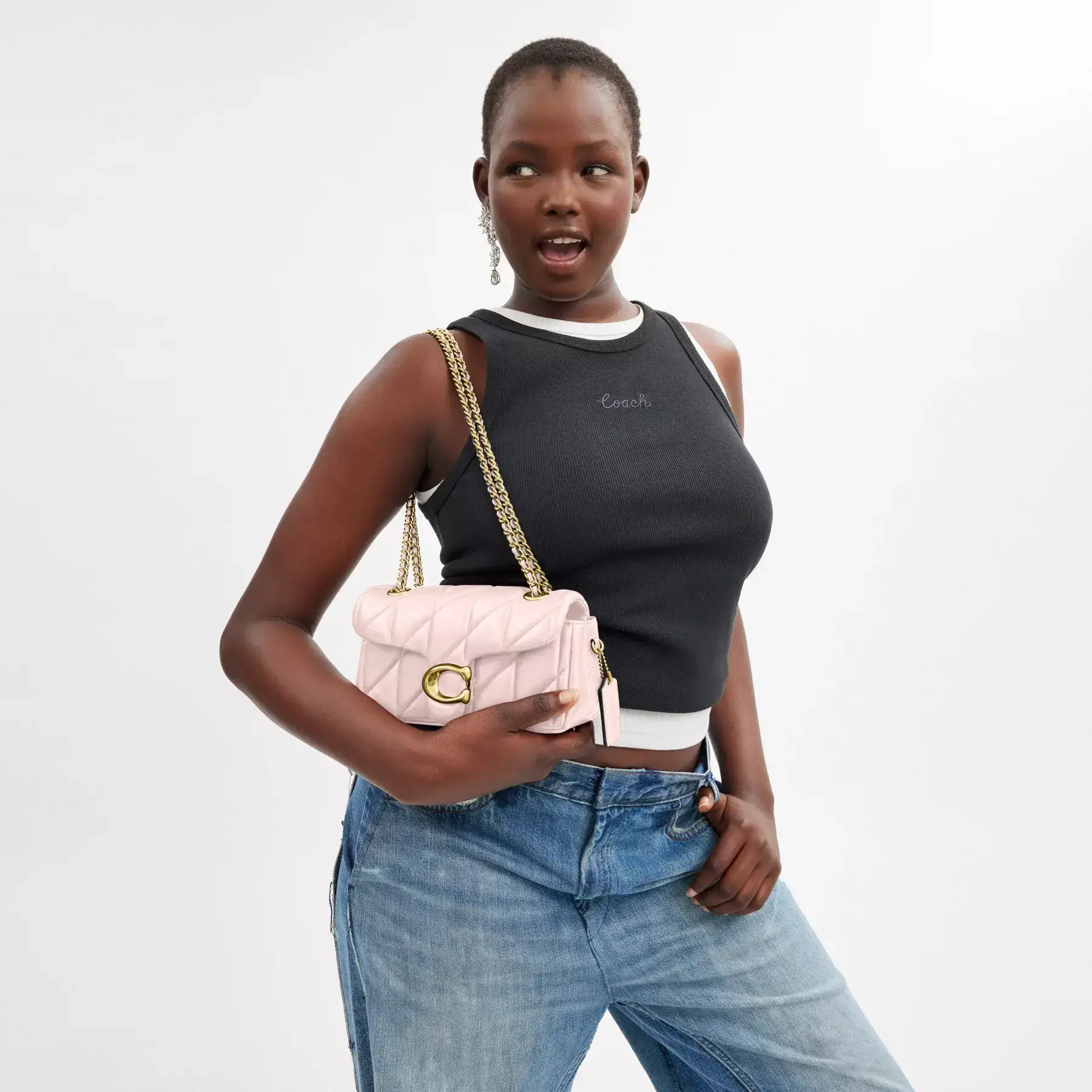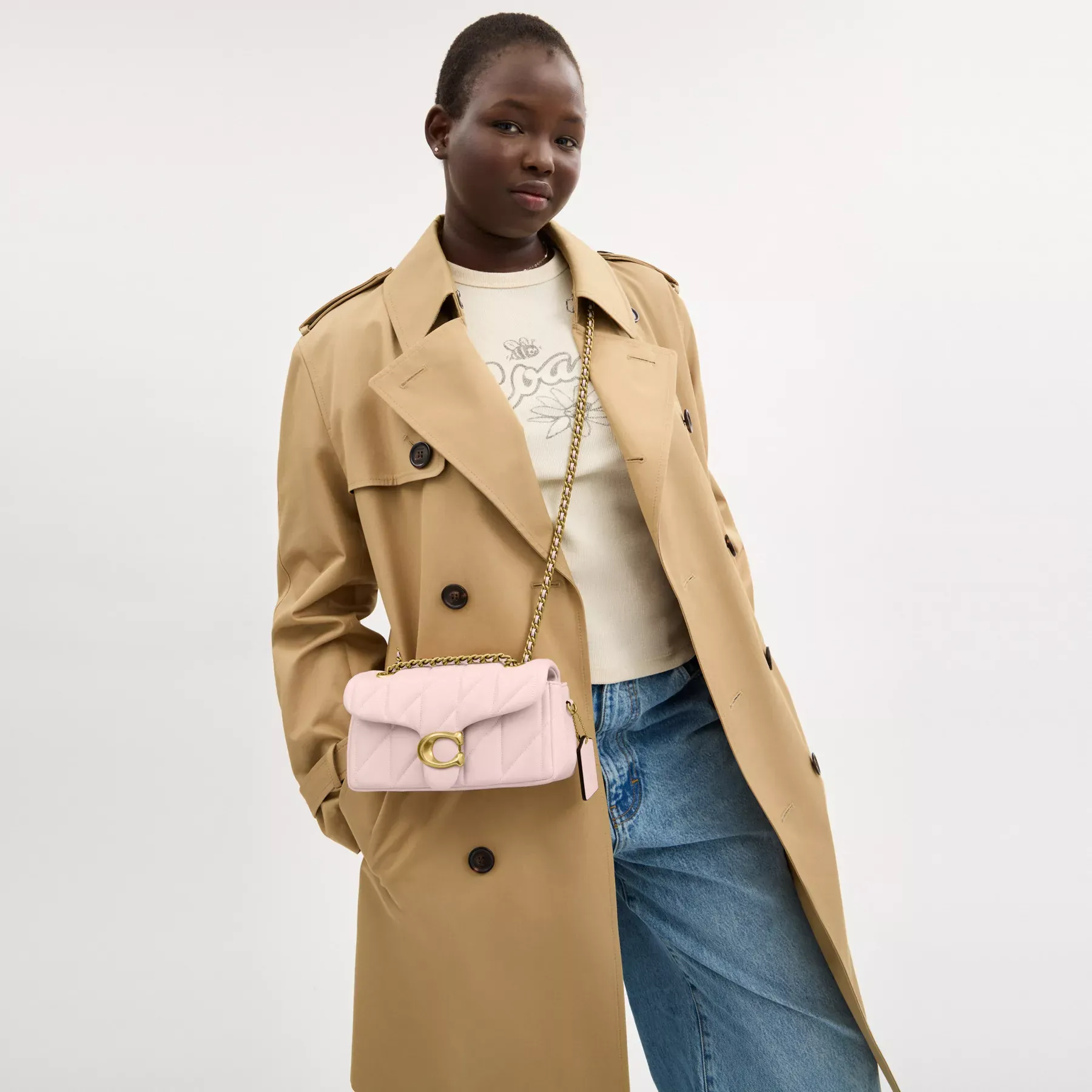A modern take on an archival 1970s Coach design, our structured Tabby shoulder bag is crafted of quilted plush, ultra-soft nappa leather. Slightly smaller than the 26, the petite 20 features a long leather chain strap to wear crossbody or double up for a shorter, dressier look. It’s finished with our Signature hardware for an iconic touch.