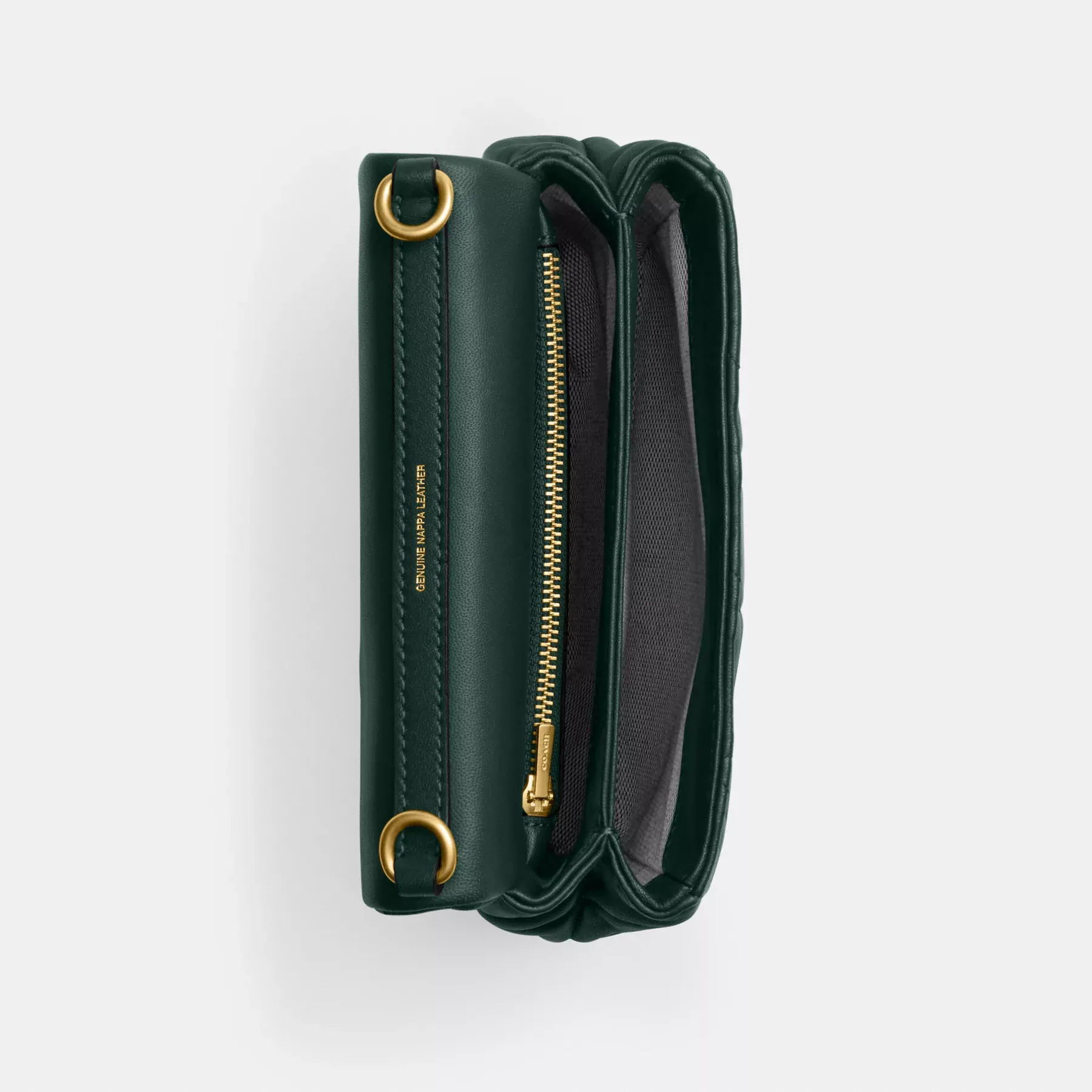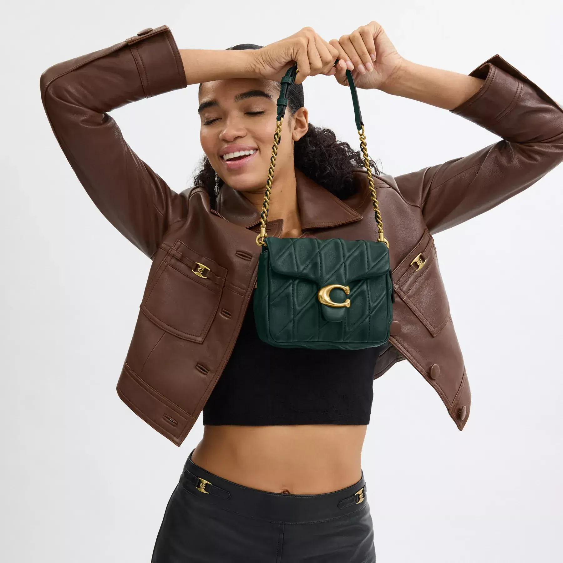 Inspired by the dynamic energy of our hometown New York City, the Times Square Tabby is a modern take on an archival 1970s Coach design. Crafted of quilted washed nappa leather and finished with our Signature hardware for an iconic touch, the petite 17 has room for a phone and features versatile styling options with an adjustable leather and chain strap to wear short or long on the shoulder and an adjustable leather crossbody strap.