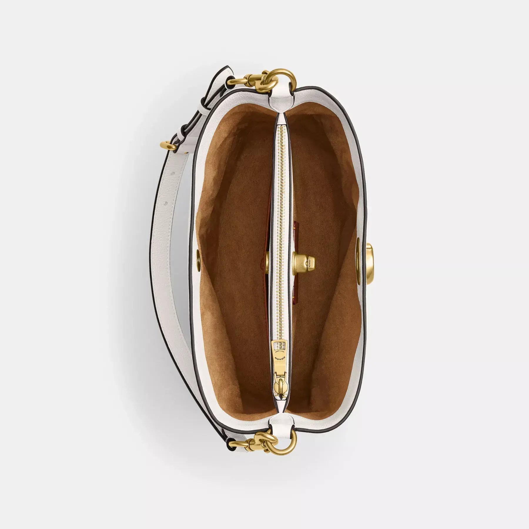 Not too big, not too small, Willow is the perfect go-anywhere shoulder bag with space for all of your day-to-day essentials. Crafted of polished pebble leather, the generously sized Soft Bucket Bag has an organized interior with one zip compartment, two open compartments and a pocket for small necessities. The streamlined bucket style secures with our Signature turnlock closure and can be carried by hand, on the shoulder or crossbody.
