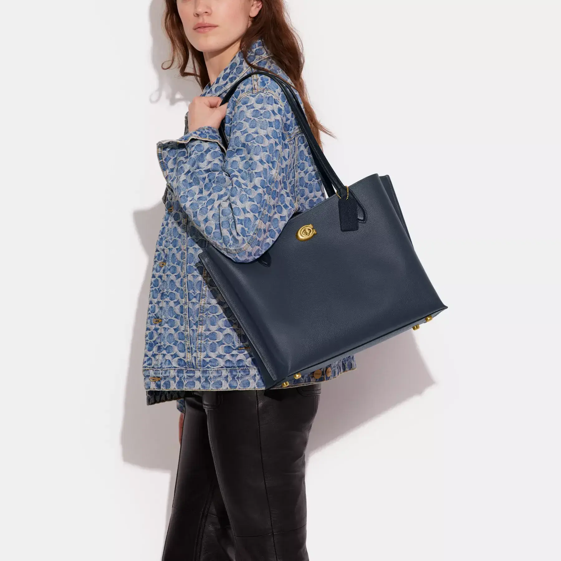 Not too big, not too small, Willow is the perfect carry-it-all tote with space for all of your day-to-day essentials. Crafted of colorblock polished pebble leather, it features two open pockets, a secure center zip compartment and slender shoulder straps designed with a longer drop to fit comfortably over coats. Finished with our Signature turnlock closure, it fits up to a 13″ laptop.